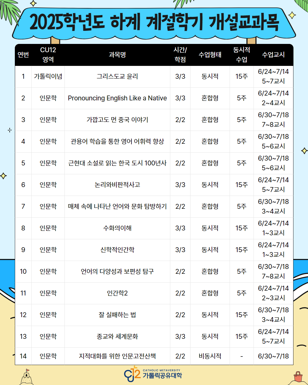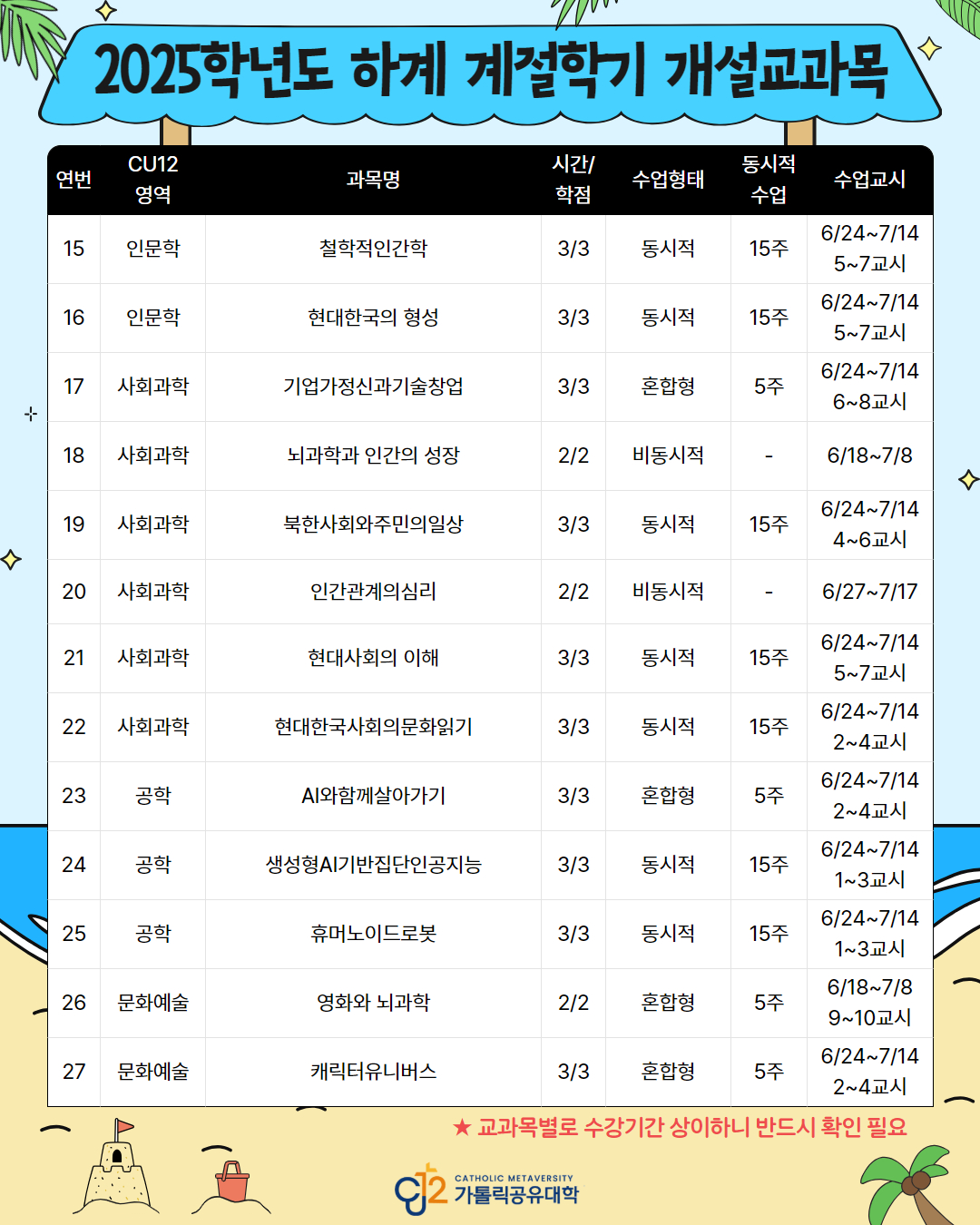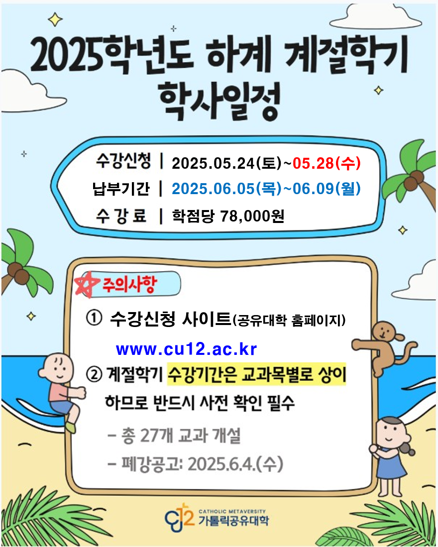 2025학년도 가톨릭공유대학 하계 계절학기 신청 안내
