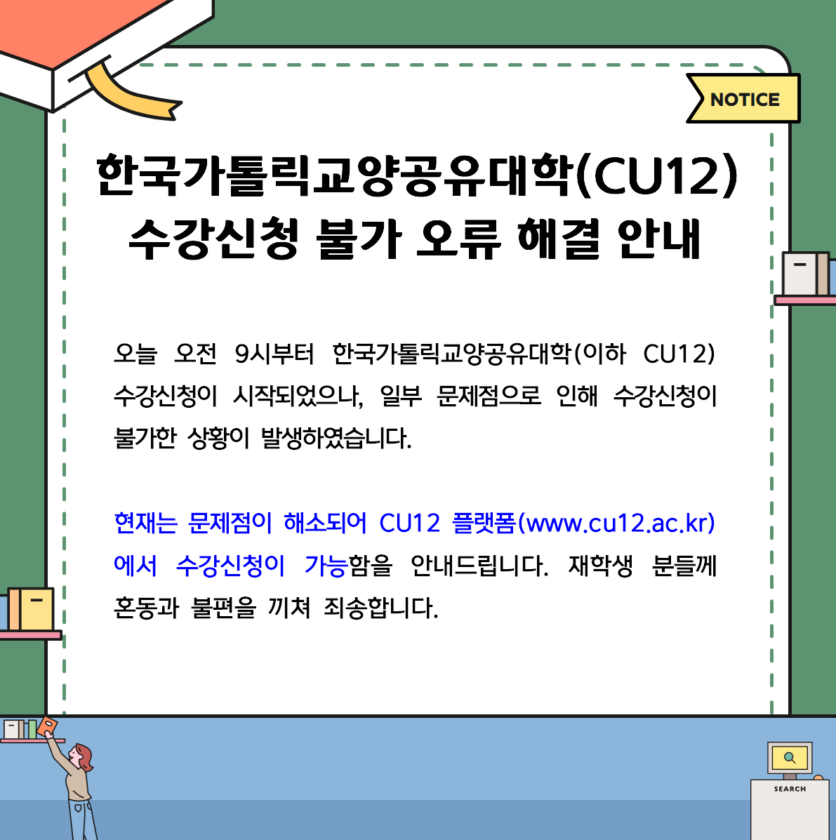 한국가톨릭교양공유대학(CU12) 수강신청 불가 오류 해결 안내