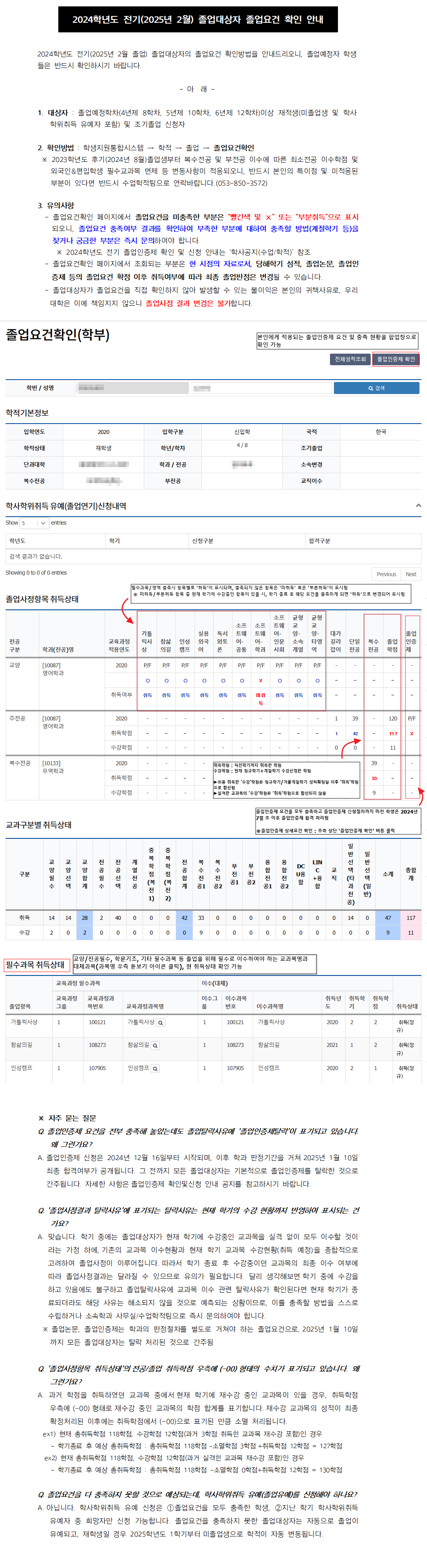 2024학년도 전기(2025년 2월) 졸업대상자 졸업요건 확인 안내