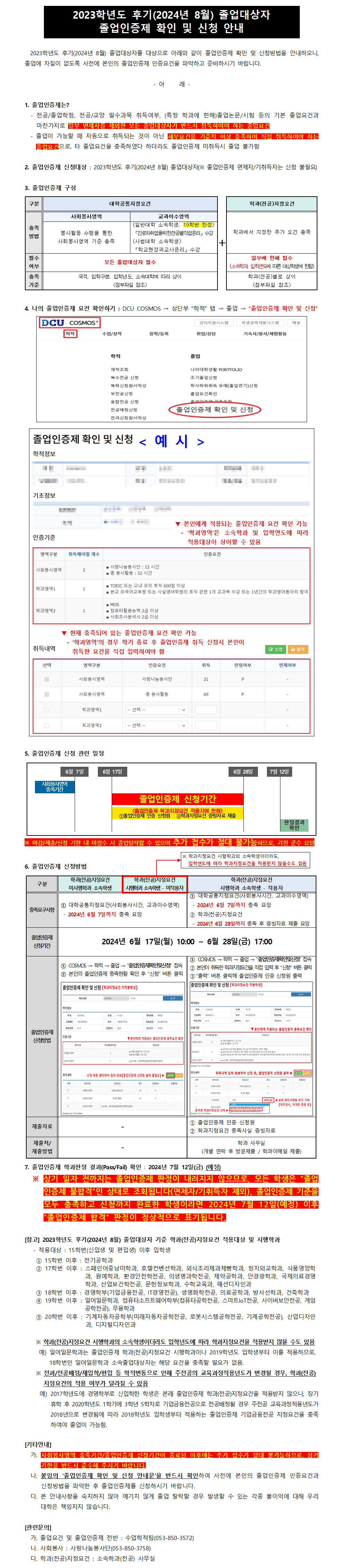2023학년도 후기(2024년 8월) 졸업인증제 확인및신청 안내