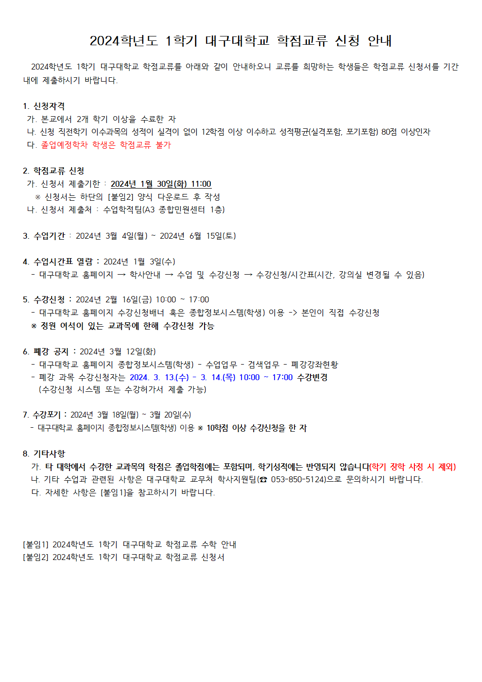 [첨부] 2024학년도 1학기 대구대학교 학점교류 신청 안내001.png
