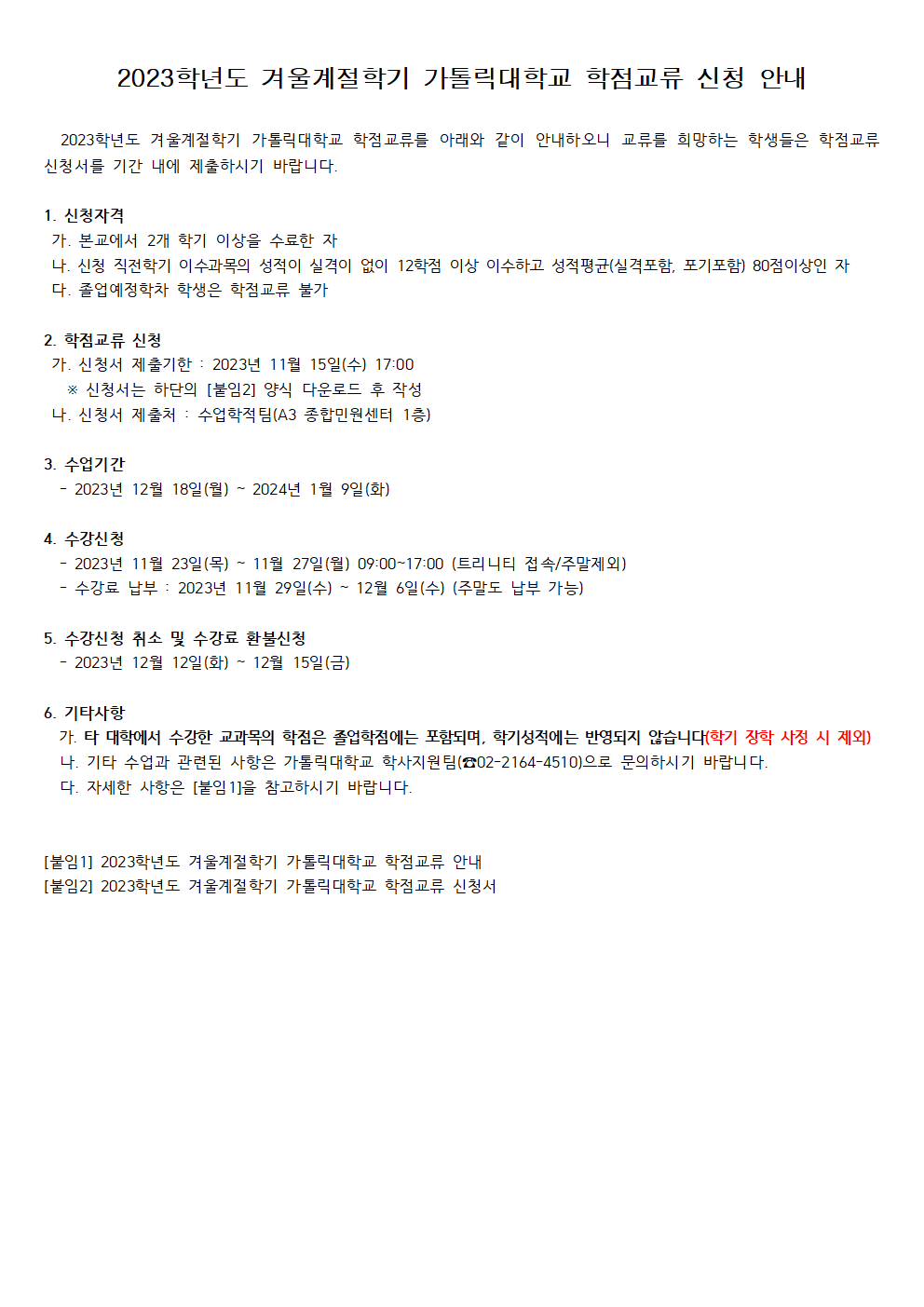 [첨부] 2023학년도 겨울계절학기 가톨릭대학교 학점교류 신청 안내001.png