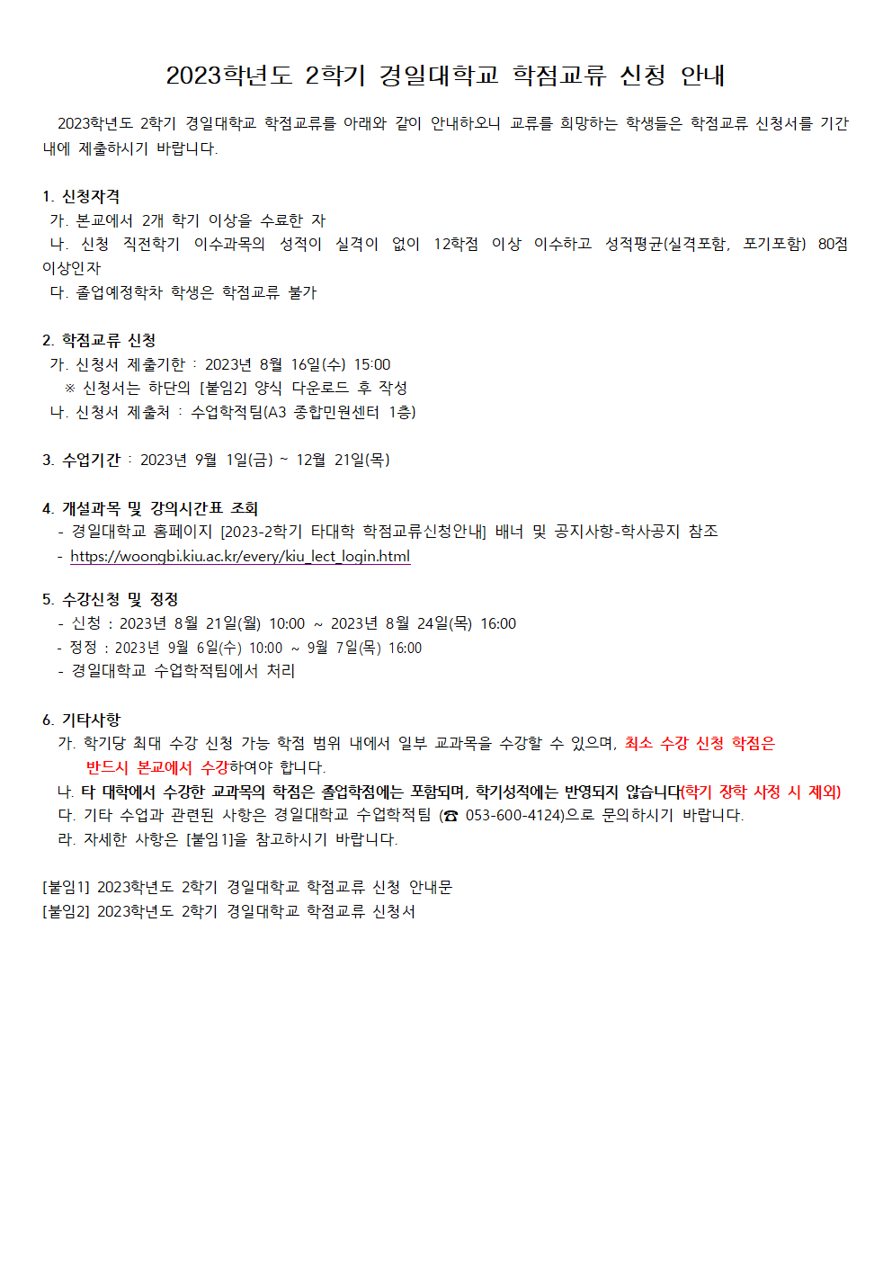 [첨부] 2023학년도 2학기 경일대학교 학점교류 신청 안내001.png