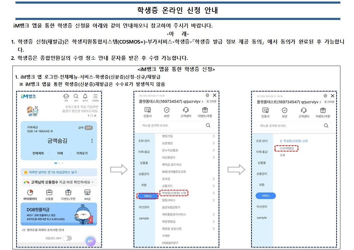 학생증 온라인 신청 안내