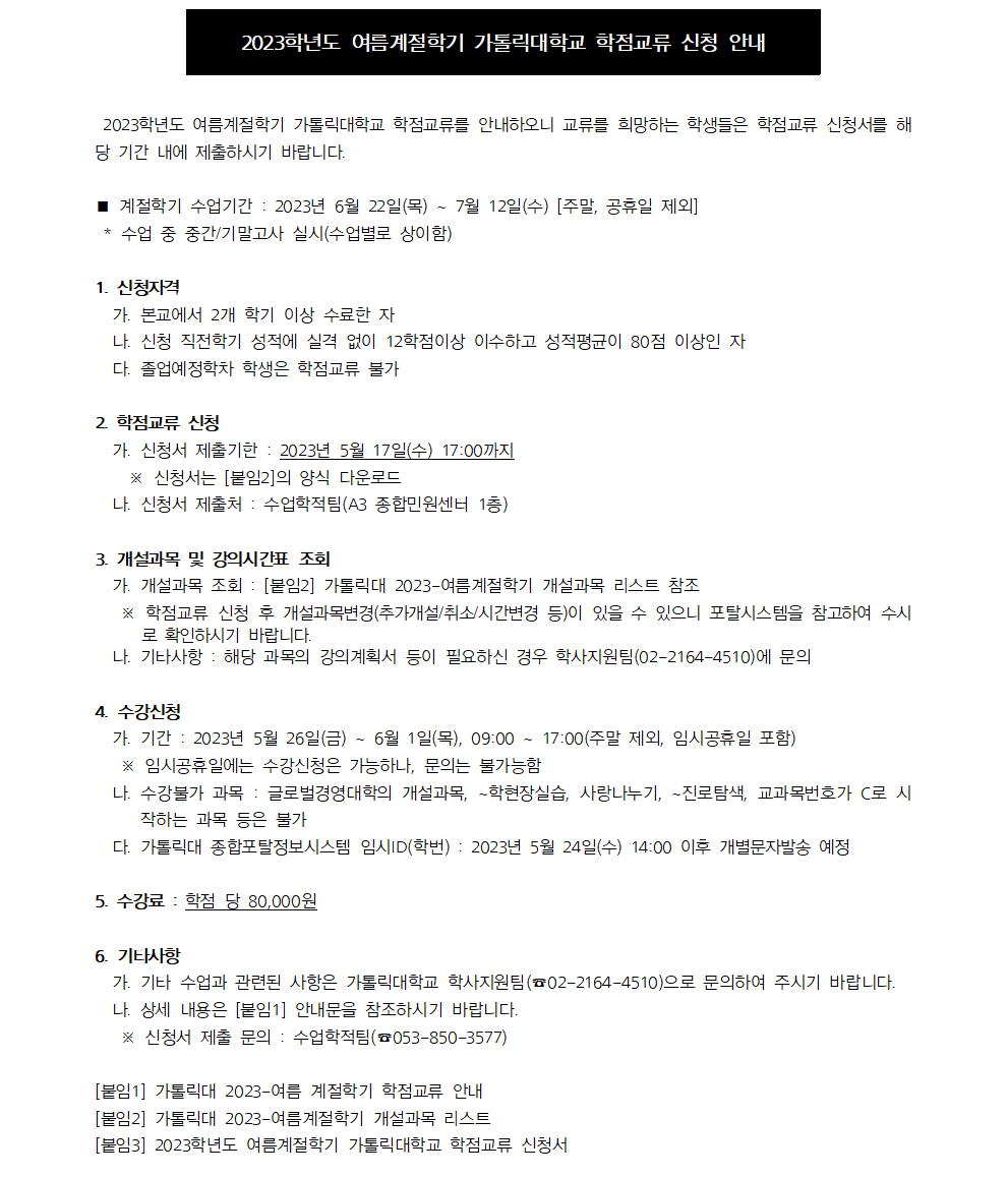 [첨부] [공지] 2023학년도 여름계절학기 가톨릭대학교 학점교류 신청 안내.png