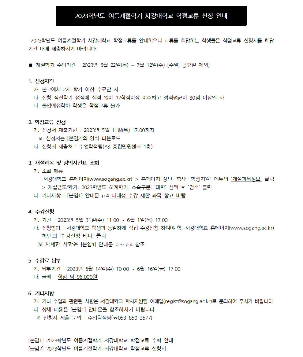 [첨부] [공지] 2023학년도 여름계절학기 서강대학교 학점교류 안내.png