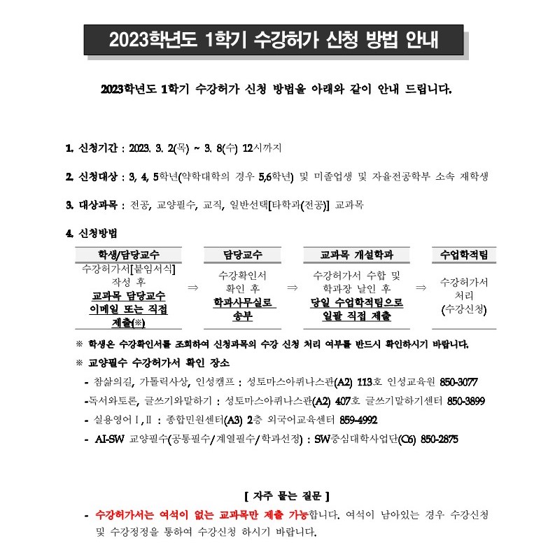 2023학년도 1학기 수강허가 신청 방법 안내