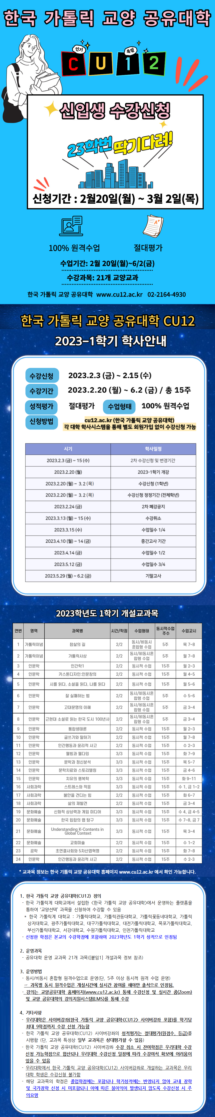 한국 가톨릭 교양 공유대학(CU12) 수강신청 재안내(신입생)