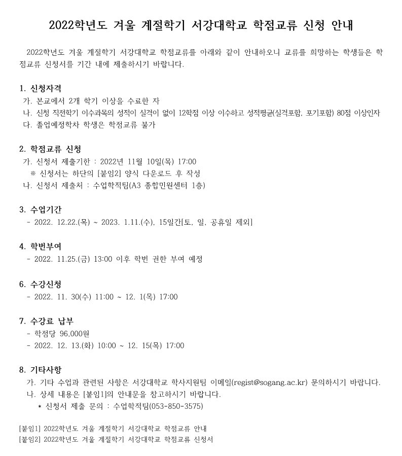 [첨부] 2022학년도 겨울 계절학기 서강대학교 학점교류 신청 안내.jpg