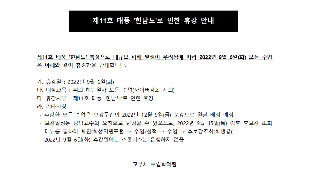 [첨부] 제11호 태풍 힌남노로 인한 휴강 안내(2022년 9월 6일).png