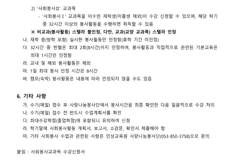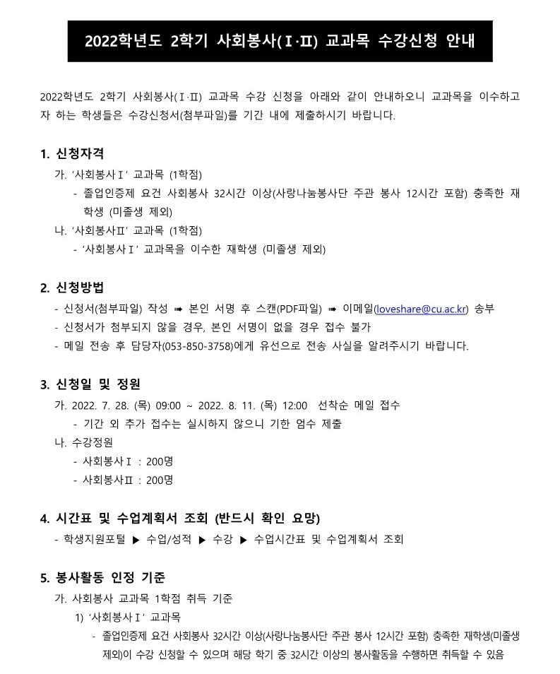 2022학년도 2학기 사회봉사 교과목 수강 신청 안내