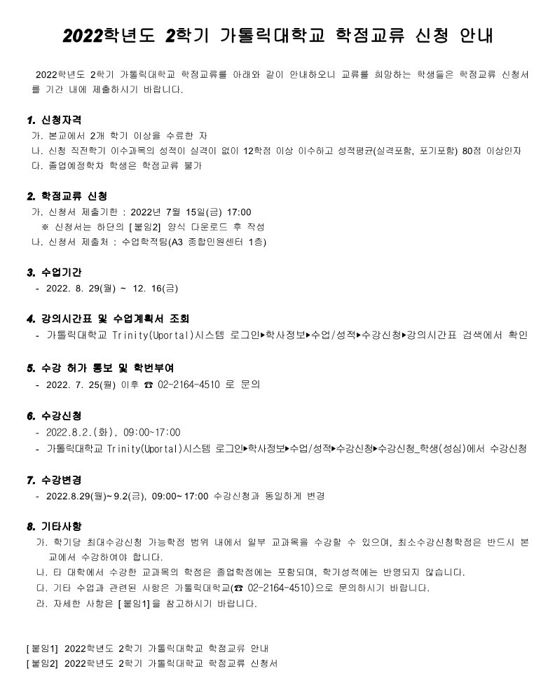 [첨부] 2022학년도 2학기 가톨릭대학교 학점교류 신청 안내.jpg
