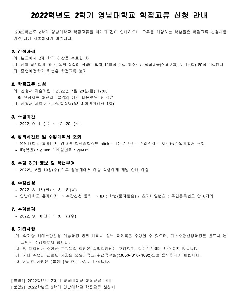 [첨부] 2022학년도 2학기 영남대학교 학점교류 신청 안내.jpg