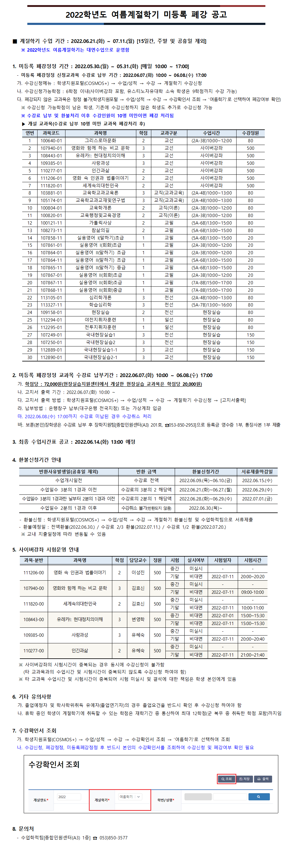 [첨부] 2022학년도 여름계절학기 미등록 폐강 공고.png