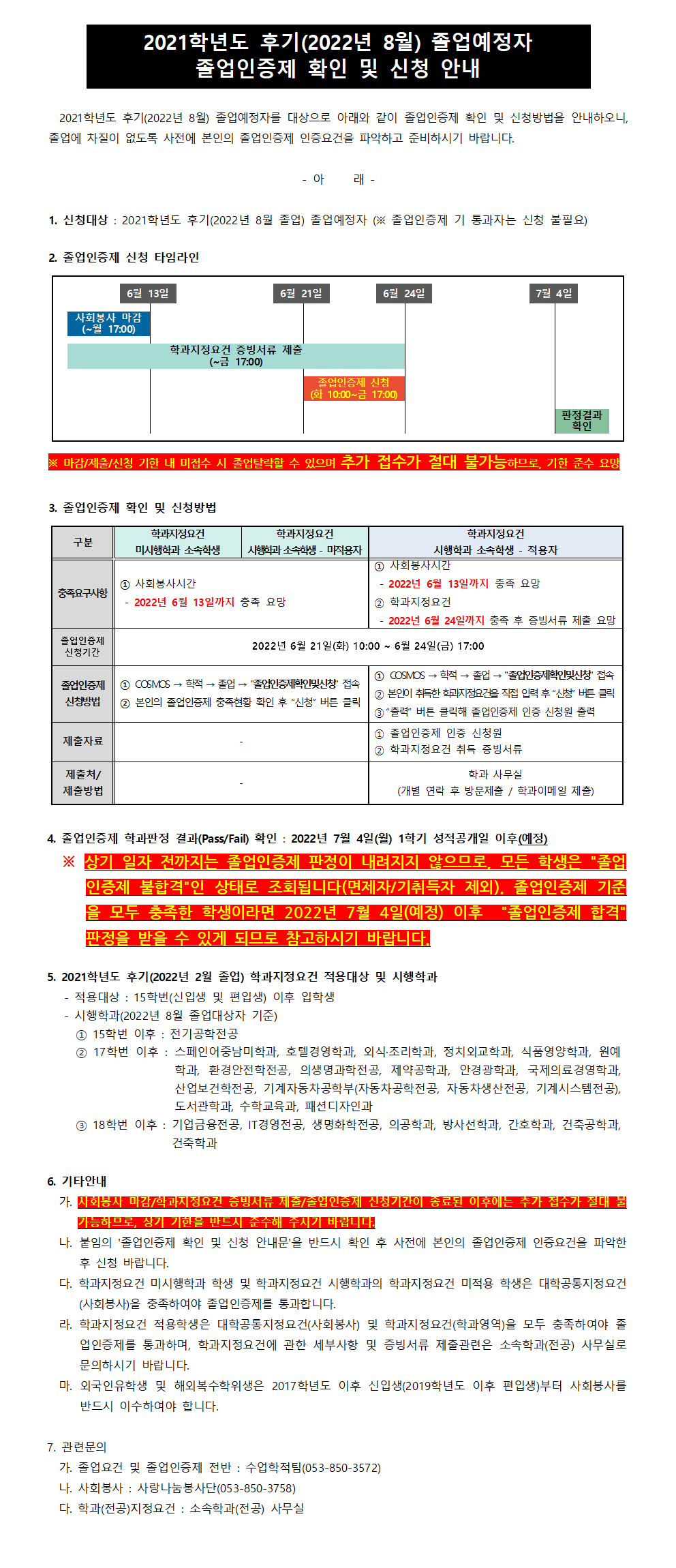 2021학년도 후기(2022년 8월) 졸업예정자 졸업인증제 확인및신청 안내