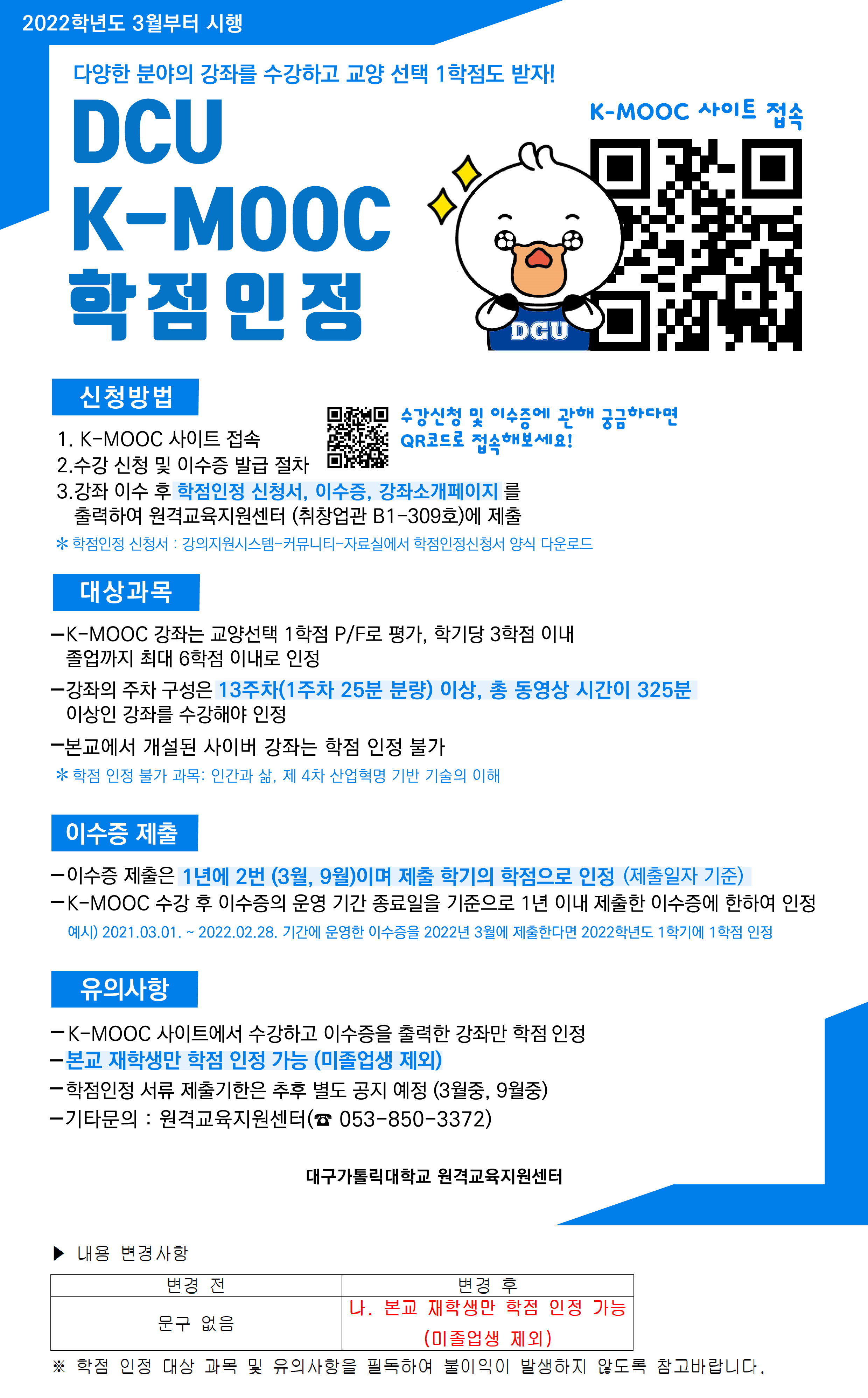 [첨부] 2022학년도 DCU K-MOOC 학점인정 포스터(수정).png