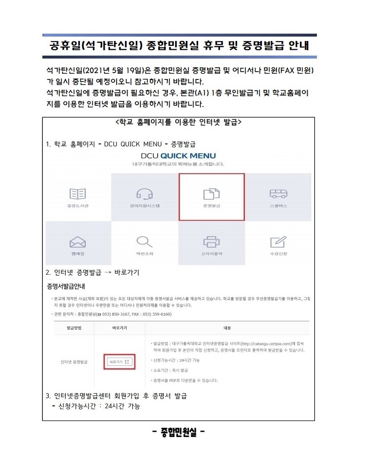 공휴일(석가탄신일) 종합민원실 휴무 및 증명발급 안내