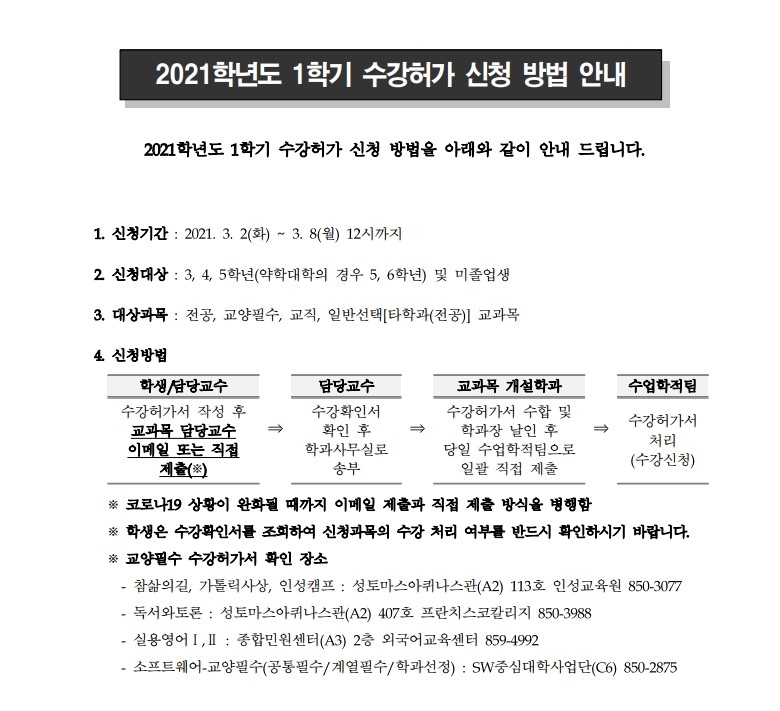 2021학년도 1학기 수강허가 신청 방법 안내