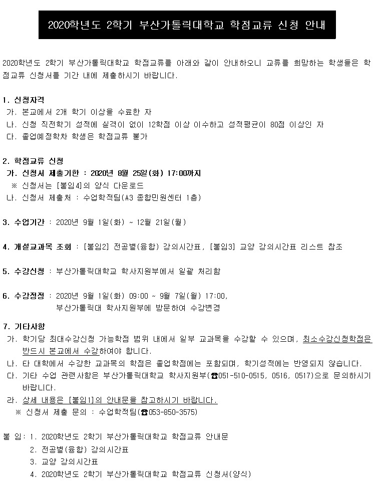 [첨부] [공지] 2020학년도 2학기 부산가톨릭대학교 학점교류 신청 안내.jpg