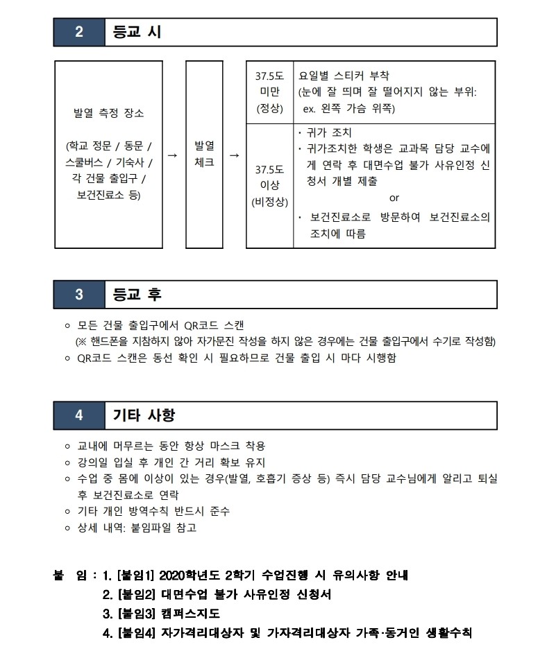 [첨부] [붙임1] 2020학년도 2학기 수업진행시 유의사항 안내.hwp