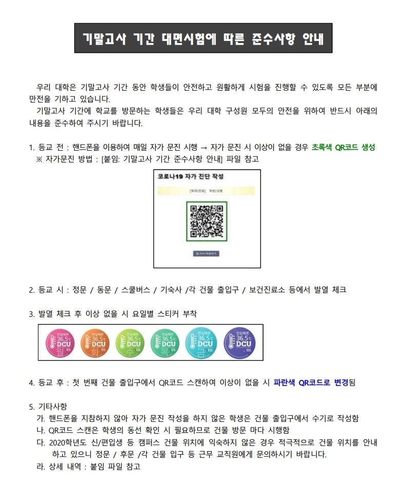 기말고사 기간 대면시험에 따른 준수사항 안내