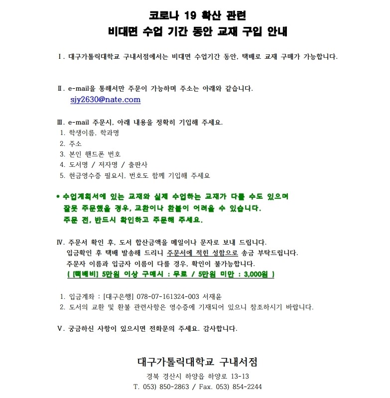 교재구입 안내(코로나19 확산 관련 비대면 수업기간)