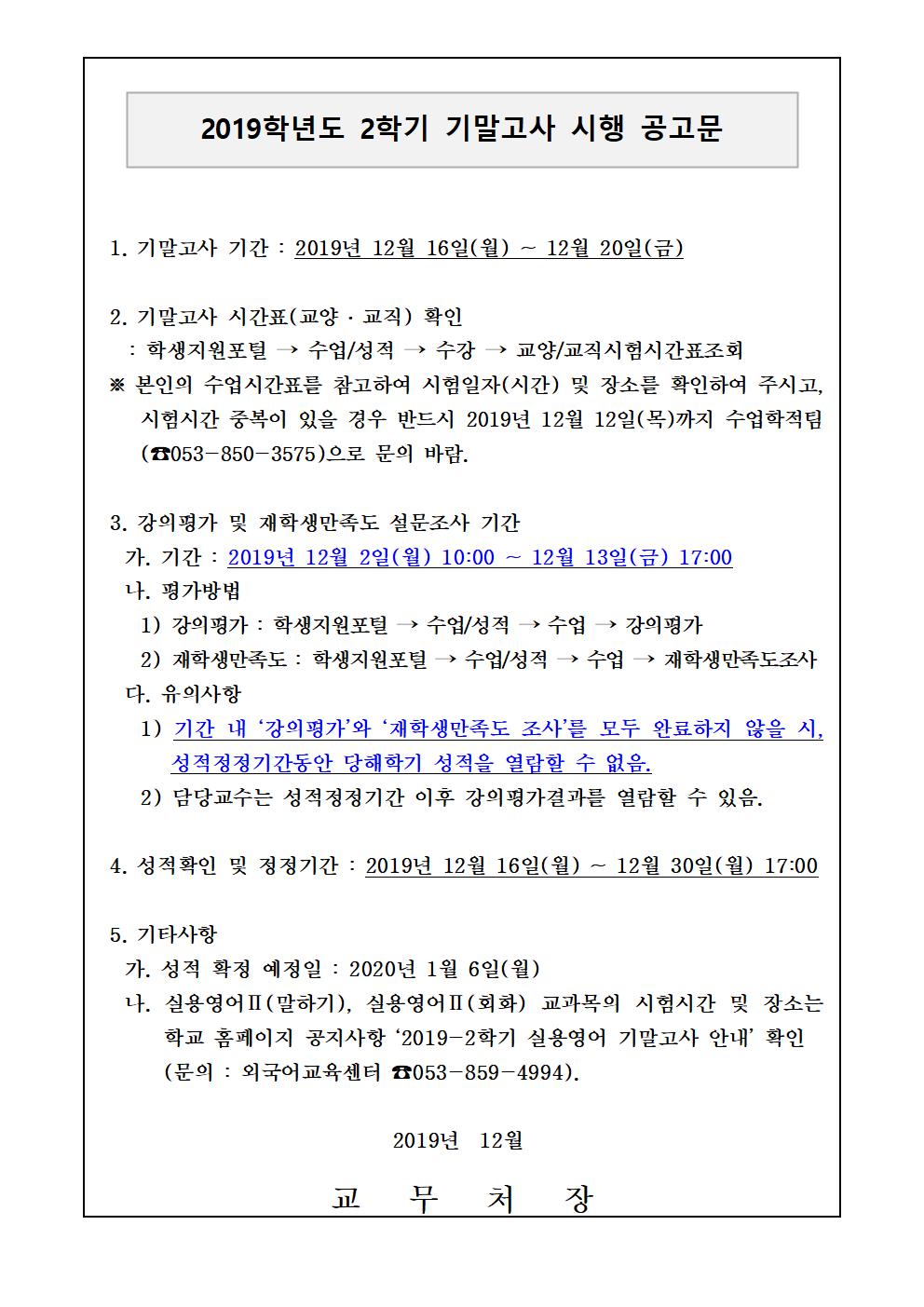 [첨부] 2019학년도 2학기 기말고사 시행 공고문.jpg